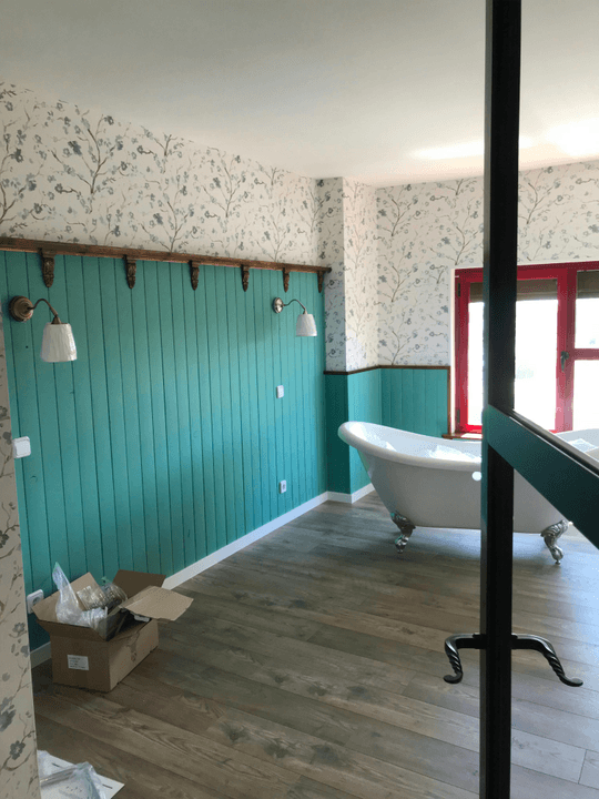 El baño original fue transformado en un refugio de relajación, combinando colores suaves y accesorios modernos para un ambiente sereno.